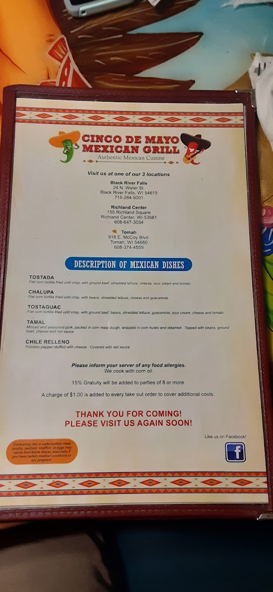 Welcome to Don Cinco de Mayo Cantina, where authentic Mexican flavors come alive! Located at 918 E McCoy Blvd, Tomah, WI, the cantina offers a vibrant menu that's sure to please every palate. Indulge in tantalizing appetizers like the savory Chori Queso or classic Bean Dip. The chimichangas are a must-try; stuffed with your choice of tender shredded beef or chicken, they’re deep-fried to perfection and topped with luscious cheese sauce.
